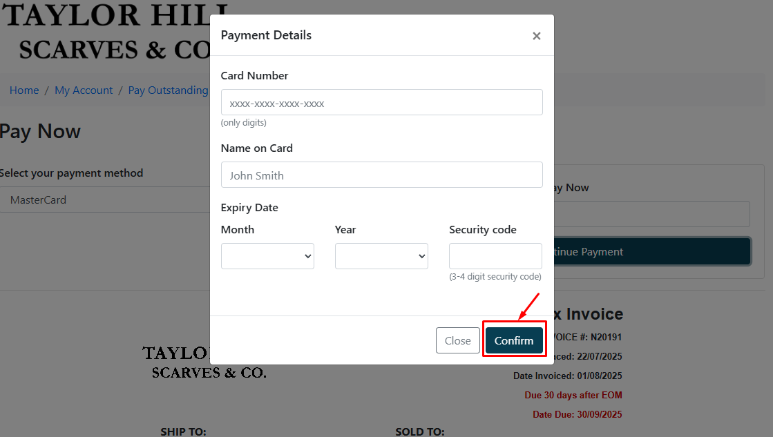Fill in your credit card details, payment details and Click confirm.