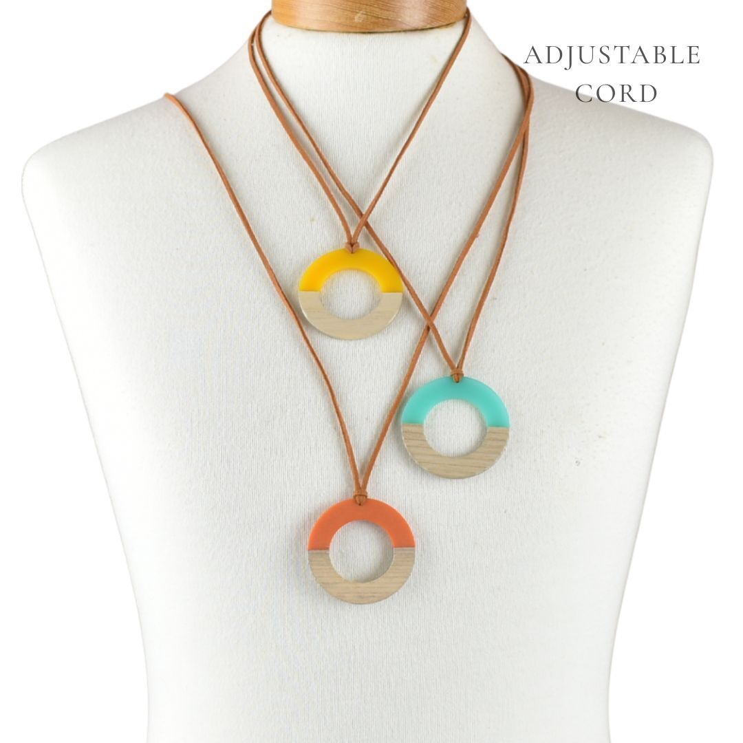 • THSAP1010: (3 pcs) Resin & Wood Circle Pendant Necklace Pack
