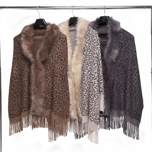 THSAP1040: (3 pcs) Faux Fur Leopard Sleeve Cape Wrap Pack