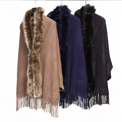 • THSAP1060: (3 pcs) Faux Fur Plain Sleeve Cape Wrap Pack