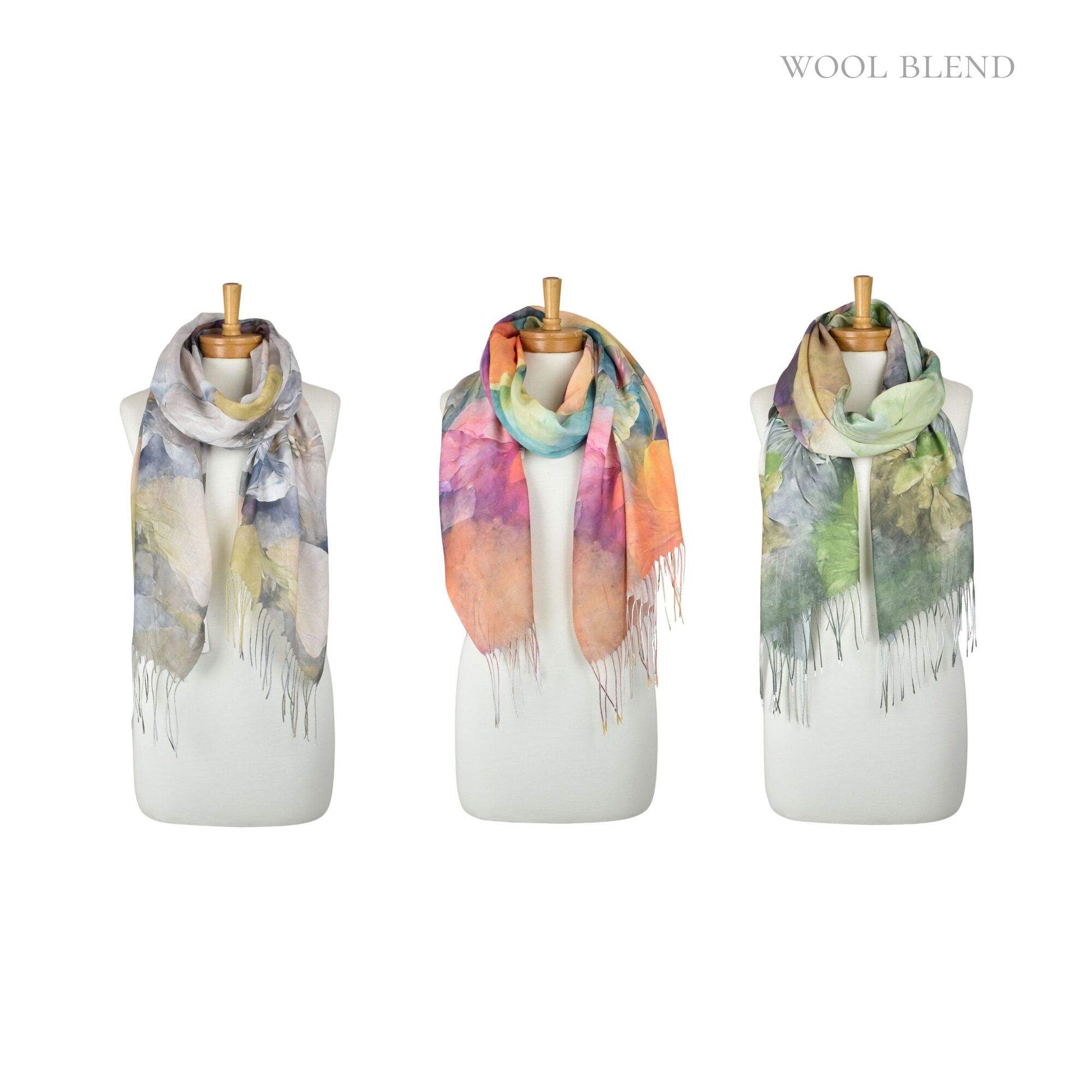 THSAP1403: (3 pcs) Watercolour Floral Fringed Scarf Pack