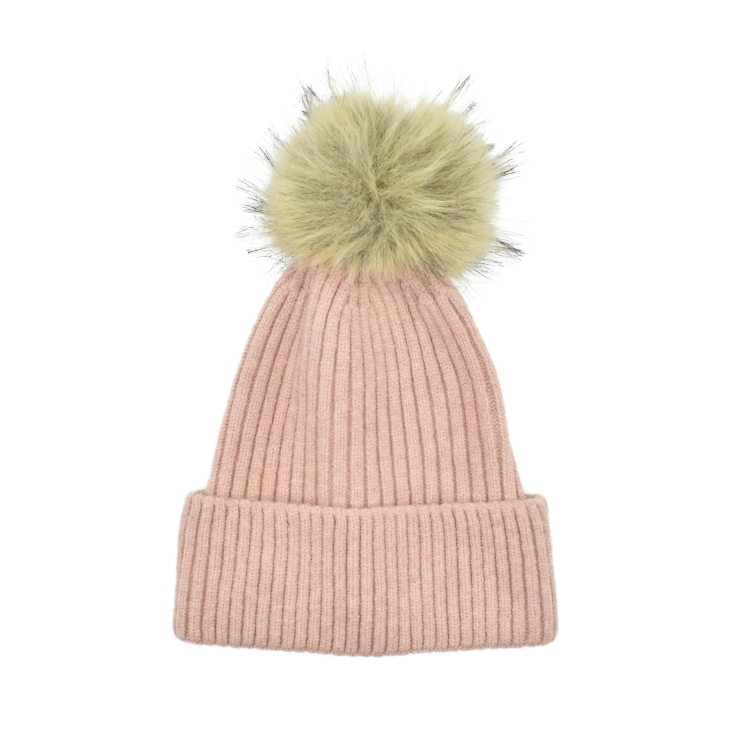 THSBE1026: Pink: Double Layer Pom Pom Rib Knit Bea