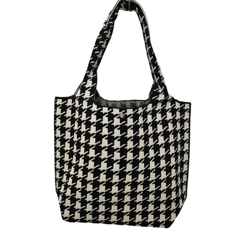 THSB1055: Black Off White: Houndstooth Tote Bag