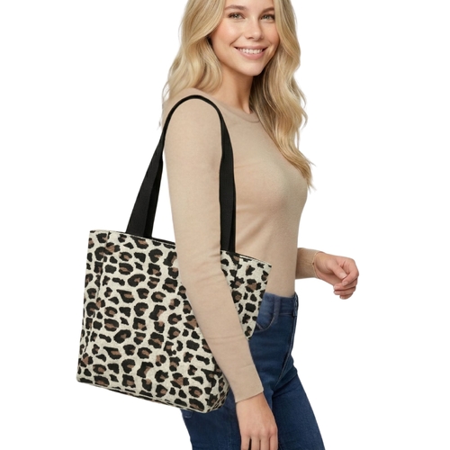 • THSB1057: Cream: Leopard Jacquard Tote Bag