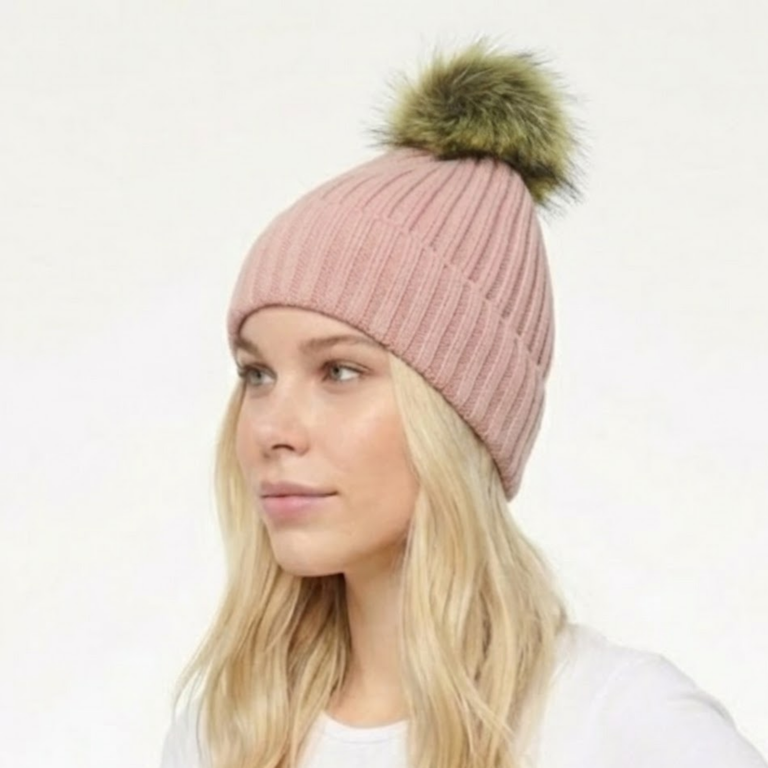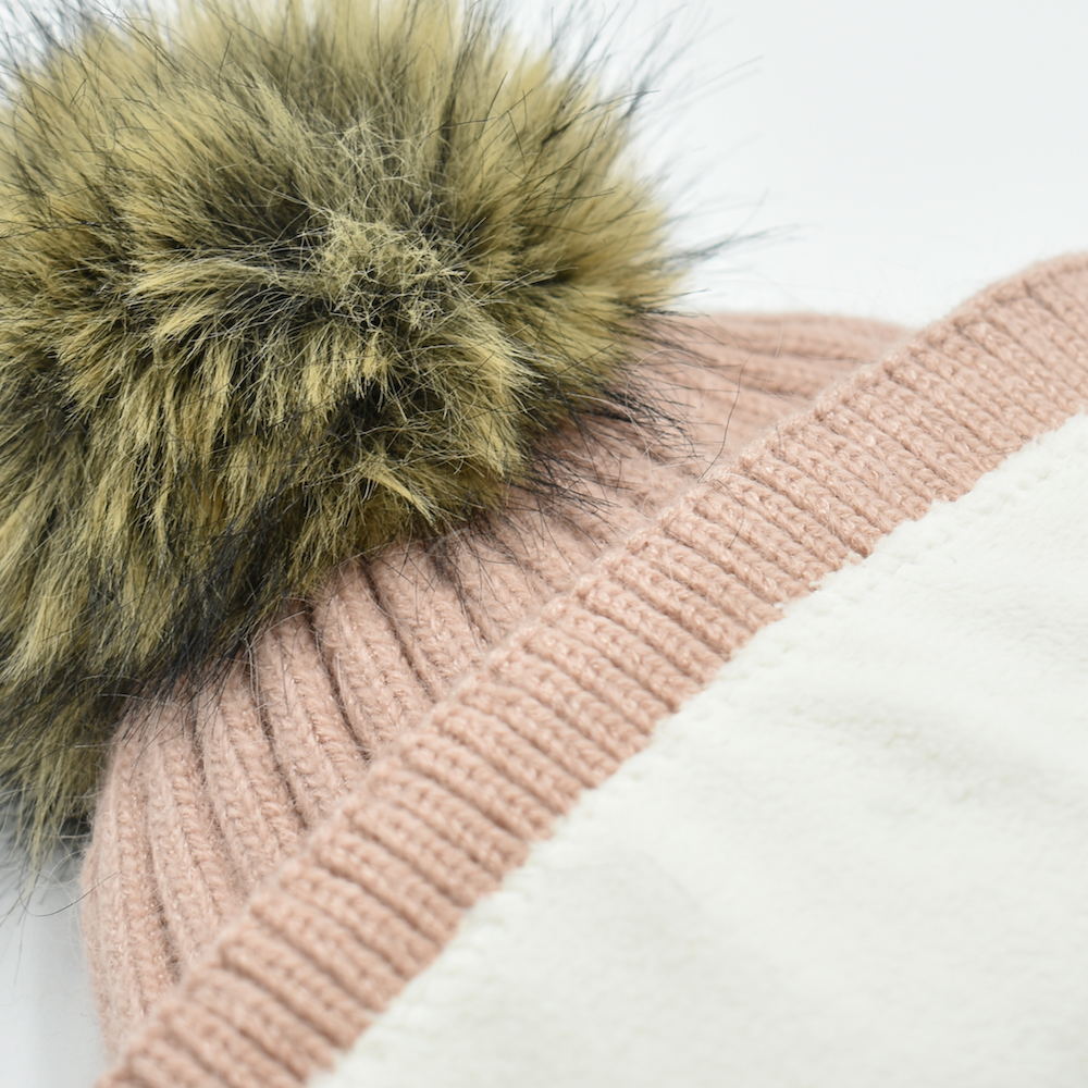 • THSBE1026: Pink: Double Layer Pom Pom Rib Knit Beanie