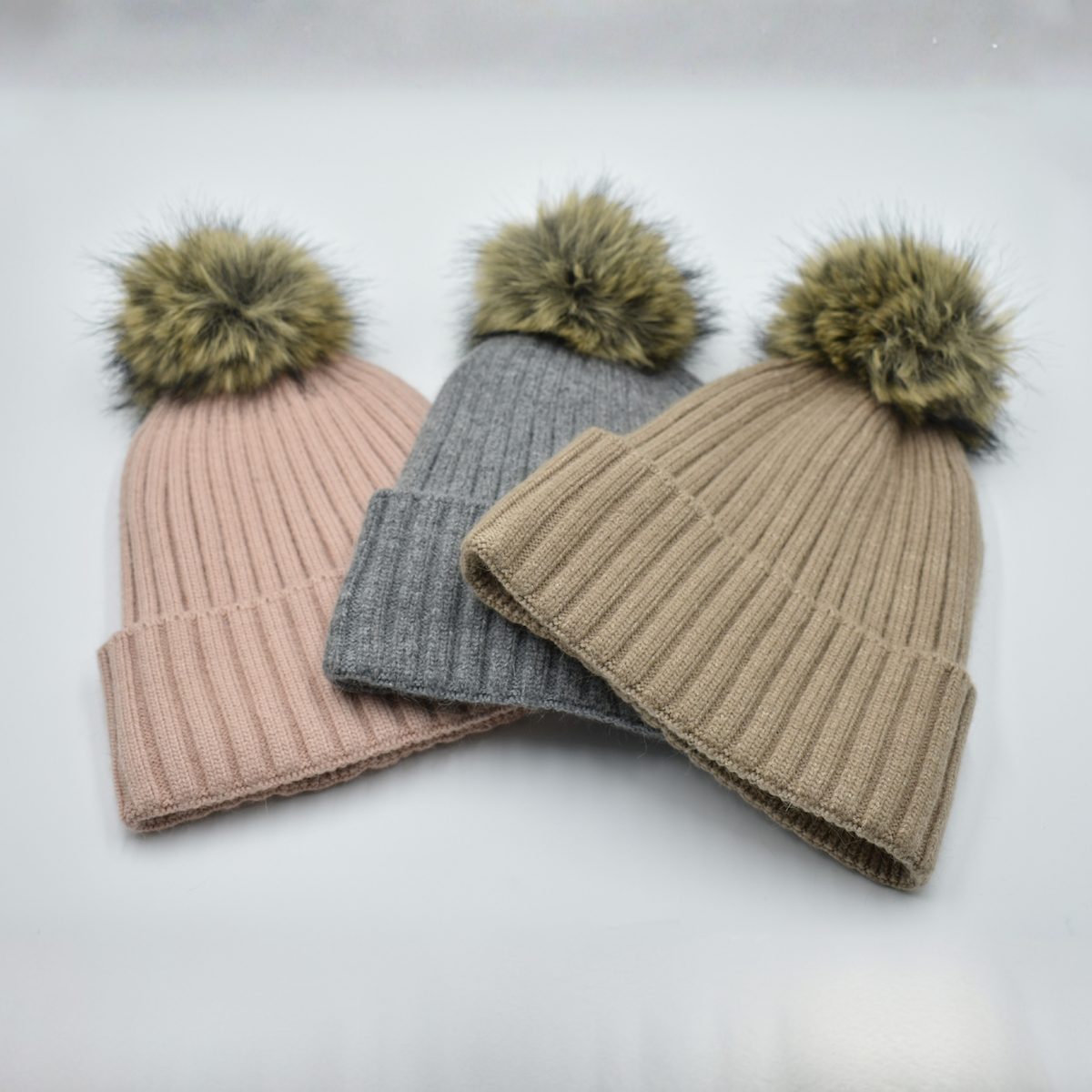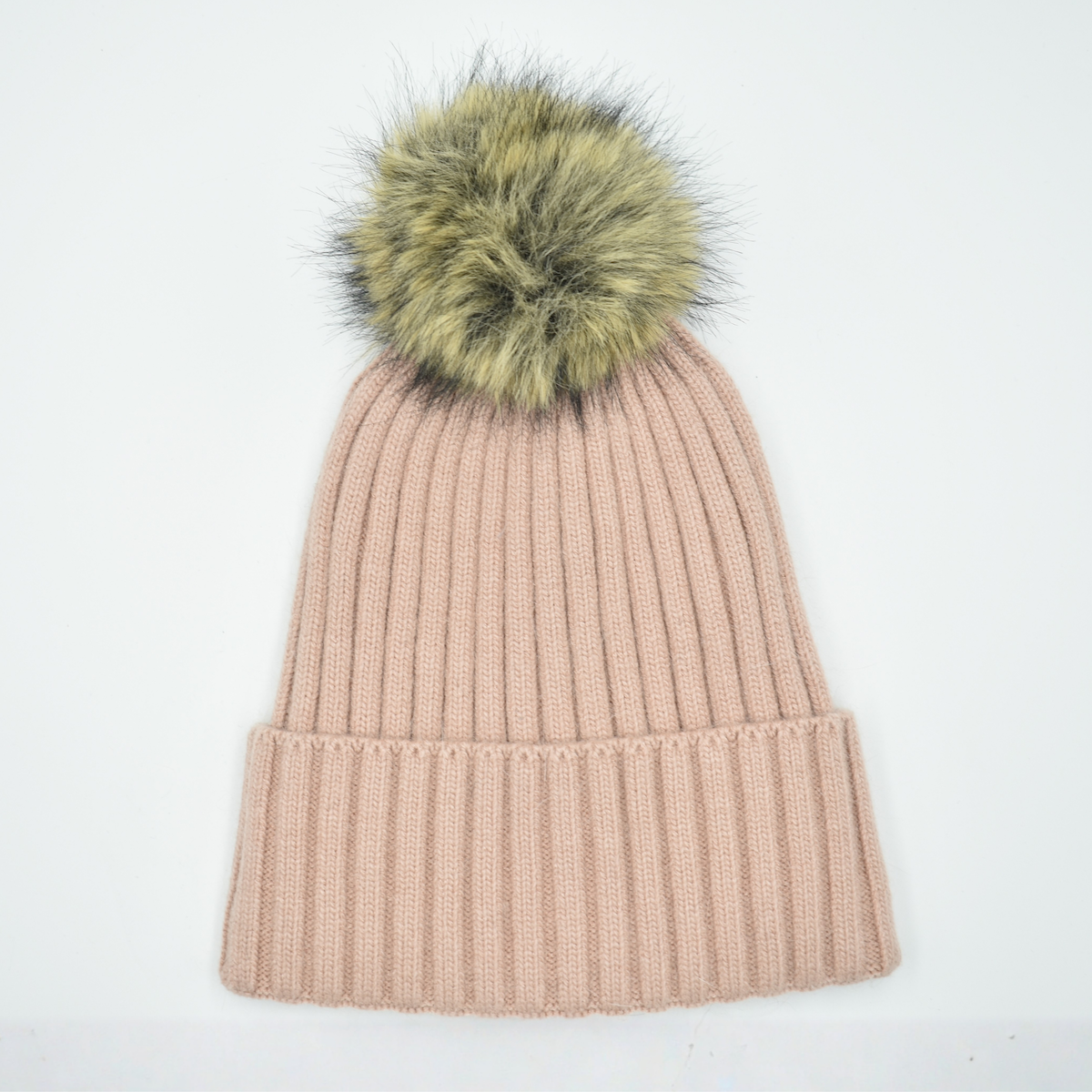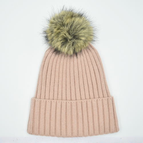 THSBE1039: Cream: Pom Pom Ribbed Knit Beanie