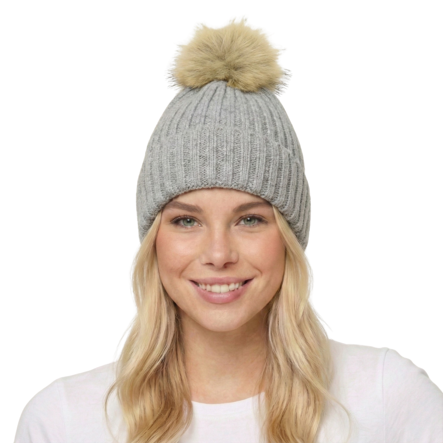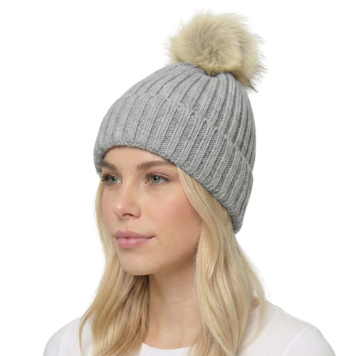 THSBE1034: Grey: Soft Knit Pom Pom Beanie