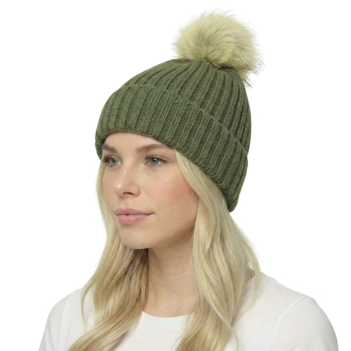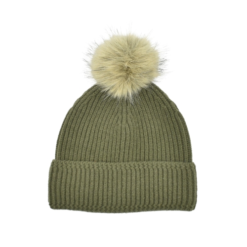 • THSBE1037: Green: Pom Pom Ribbed Knit Beanie