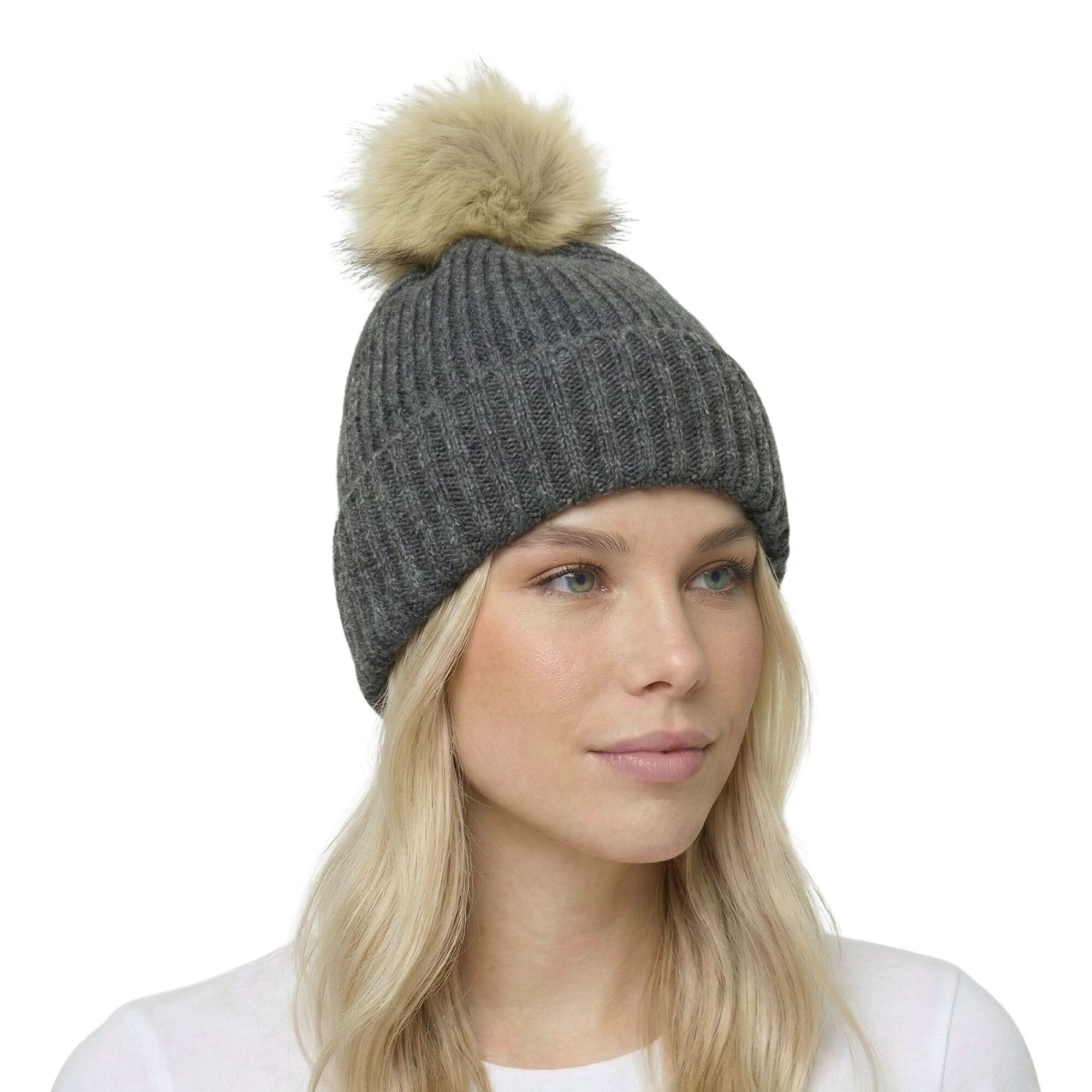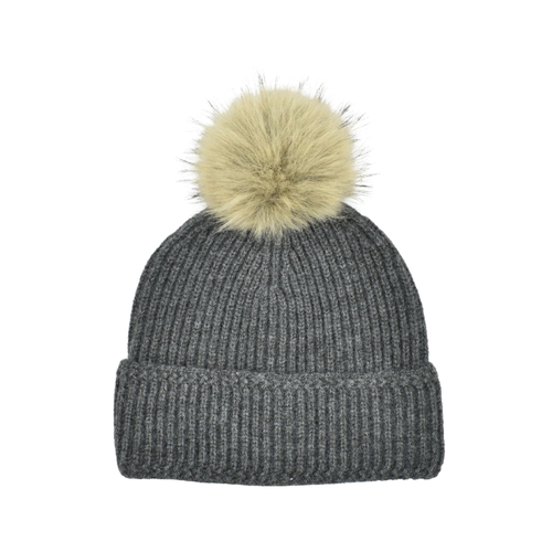 • THSBE1038: Dark Grey: Pom Pom Ribbed Knit Beanie