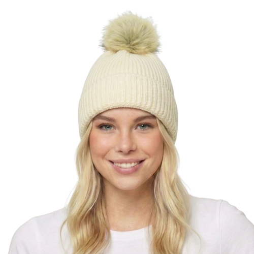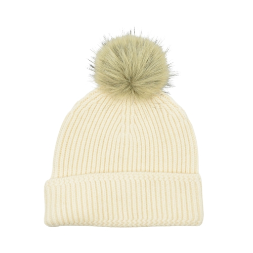 • THSBE1039: Cream: Pom Pom Ribbed Knit Beanie