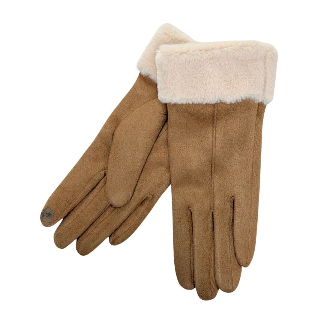 THSG1092: Camel: Faux Fur Double Layer Gloves