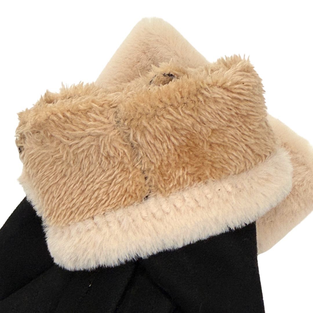 THSG1093: Black: Faux Fur Double Layer Gloves