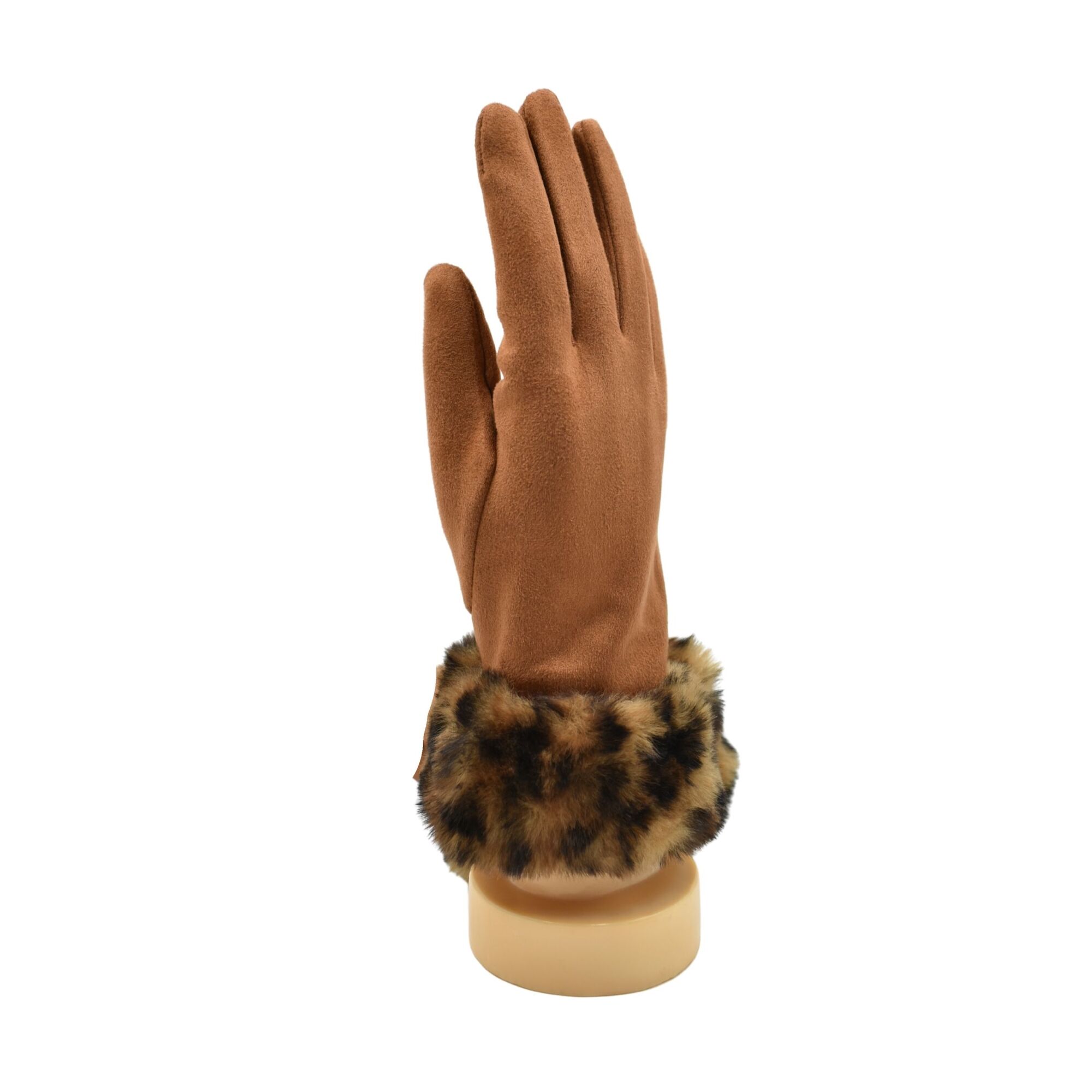 • THSG1140: Tan: Faux Fur Leopard Cuff Gloves