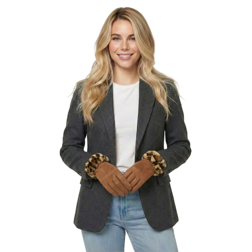 THSG1140: Tan: Faux Fur Leopard Cuff Gloves