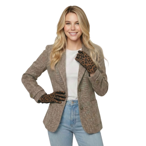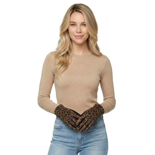 • THSG1145: Camel: Luxe Leopard Gloves