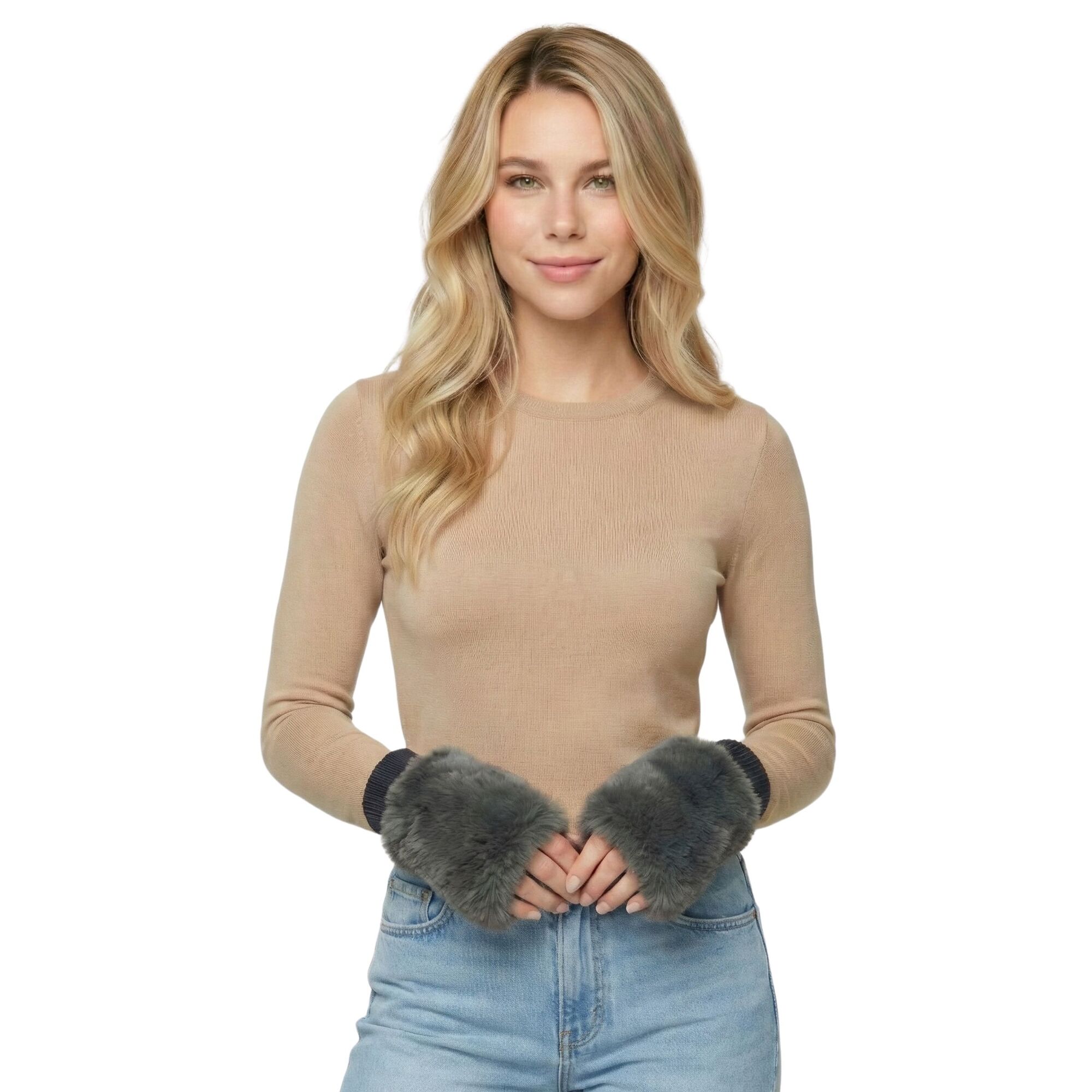 • THSG1151: Grey: Faux Fur Fingerless Gloves