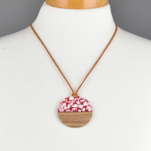 • THSJ1283: Pink: Wood Resin Pendant Necklace