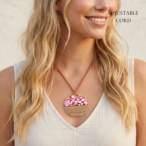 THSJ1283: Pink: Wood Resin Pendant Necklace