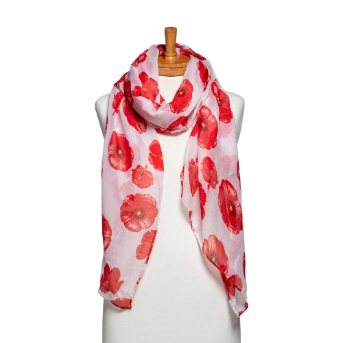 THSS2602: White: Medium Poppies Scarf