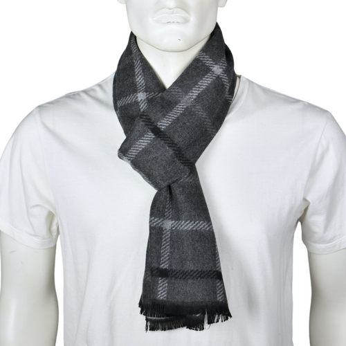 • THSS2762: Grey: Reversible Plaid Checked Scarf