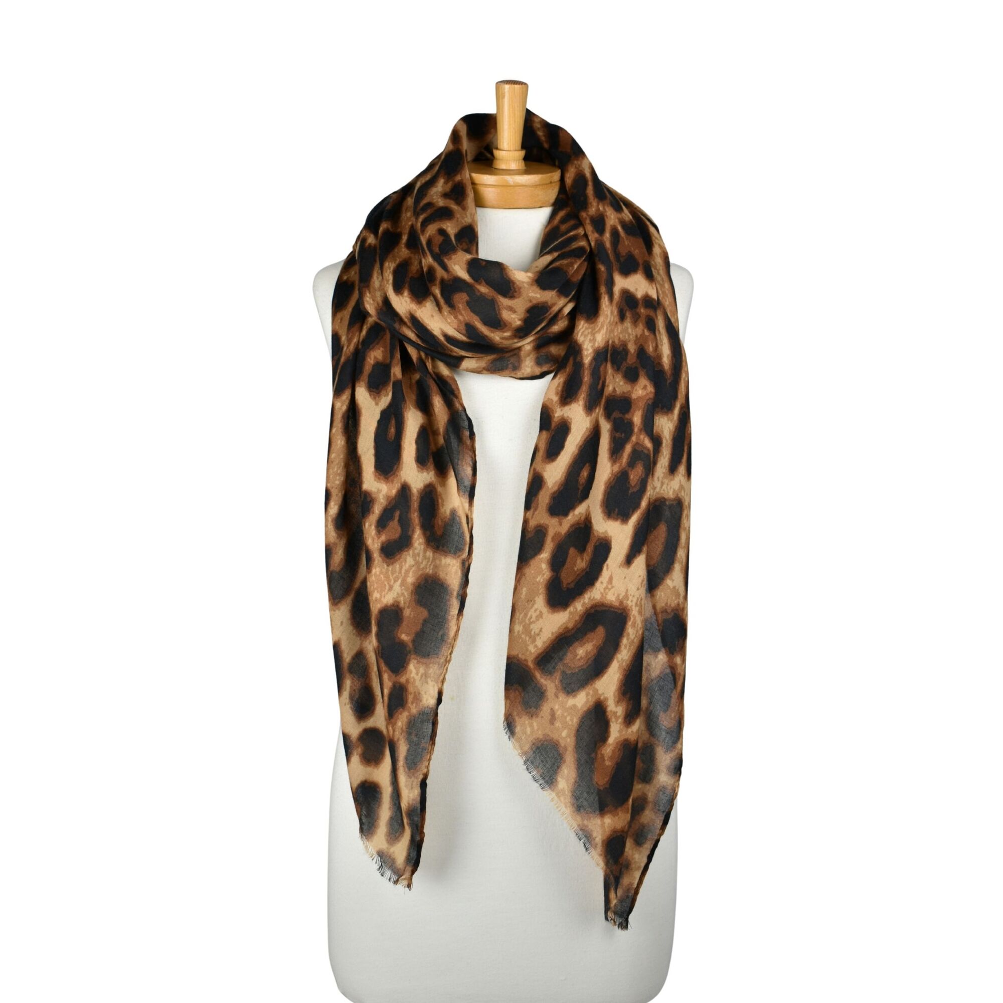 THSS2807: Tan: Leopard Print Scarf