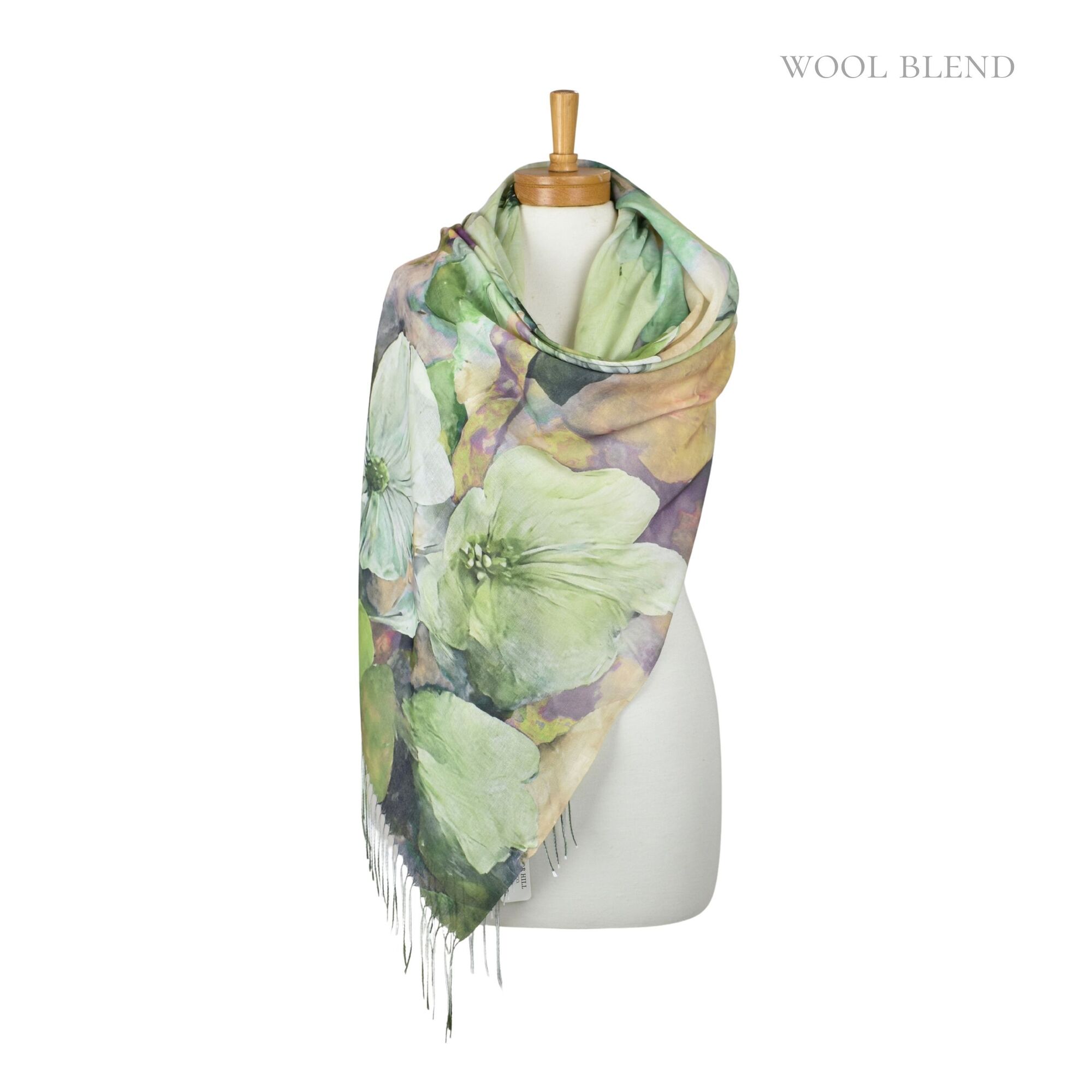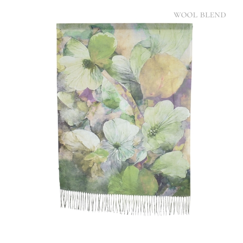 • THSS2851: Green: Gardenia Watercolour Scarf