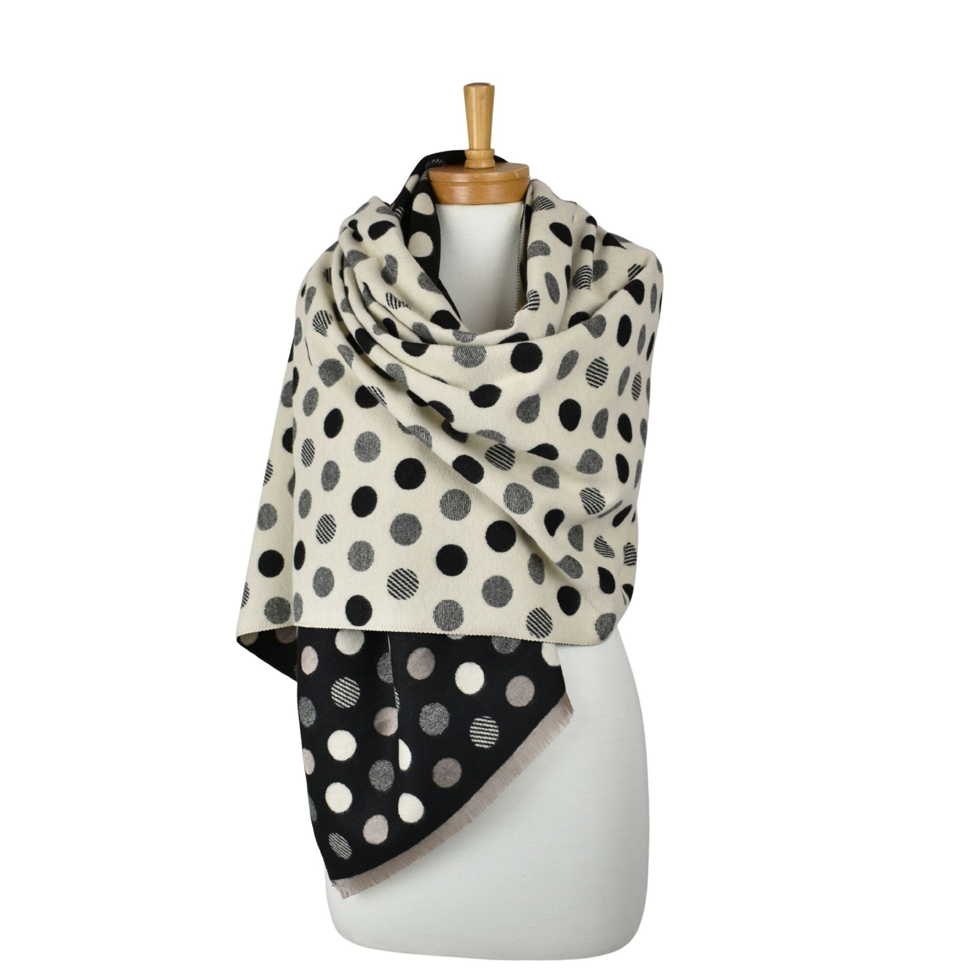 THSS2867: Black: Reversible Multi Polka Dots Scarf