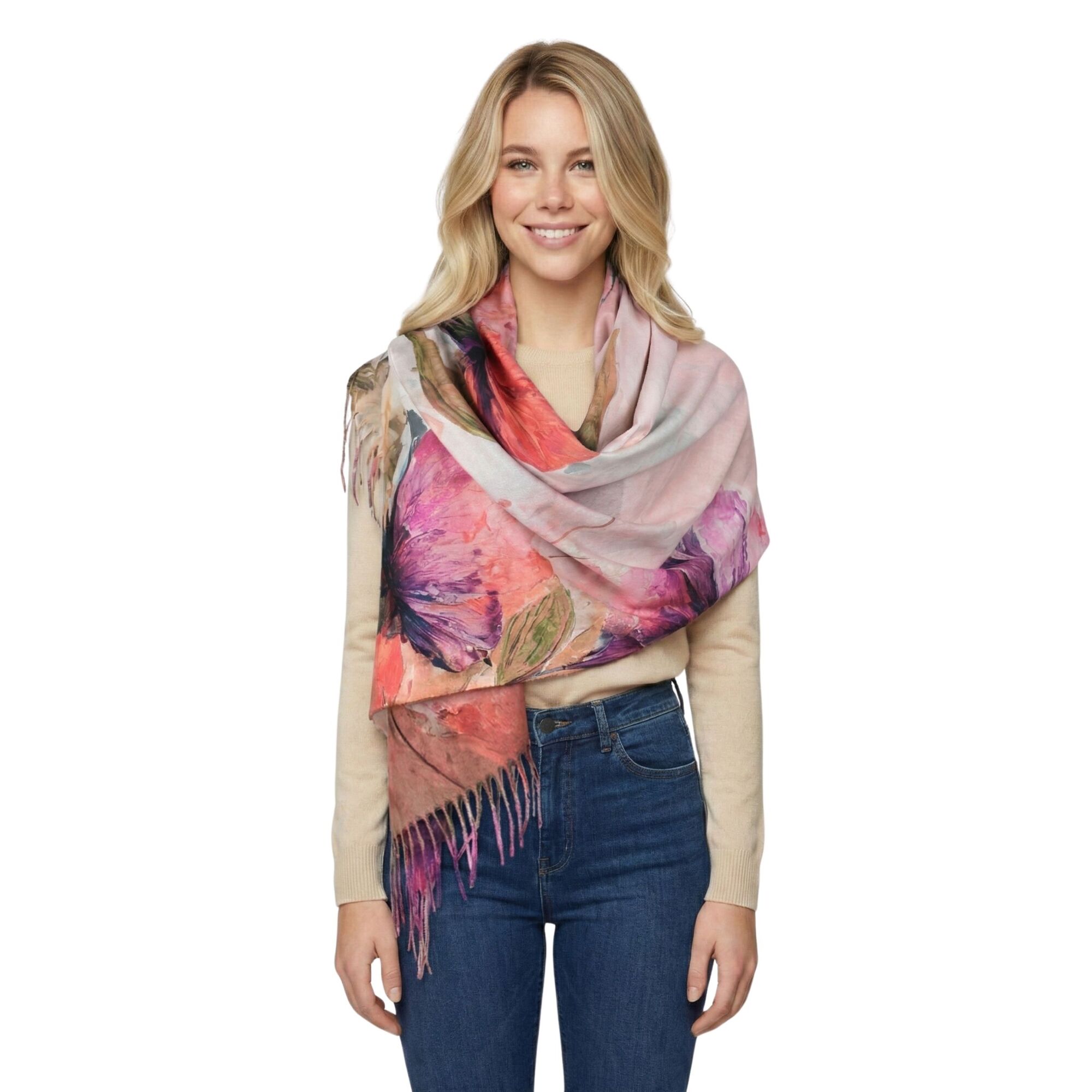 THSS2868: Pink: Watercolour Flower Scarf