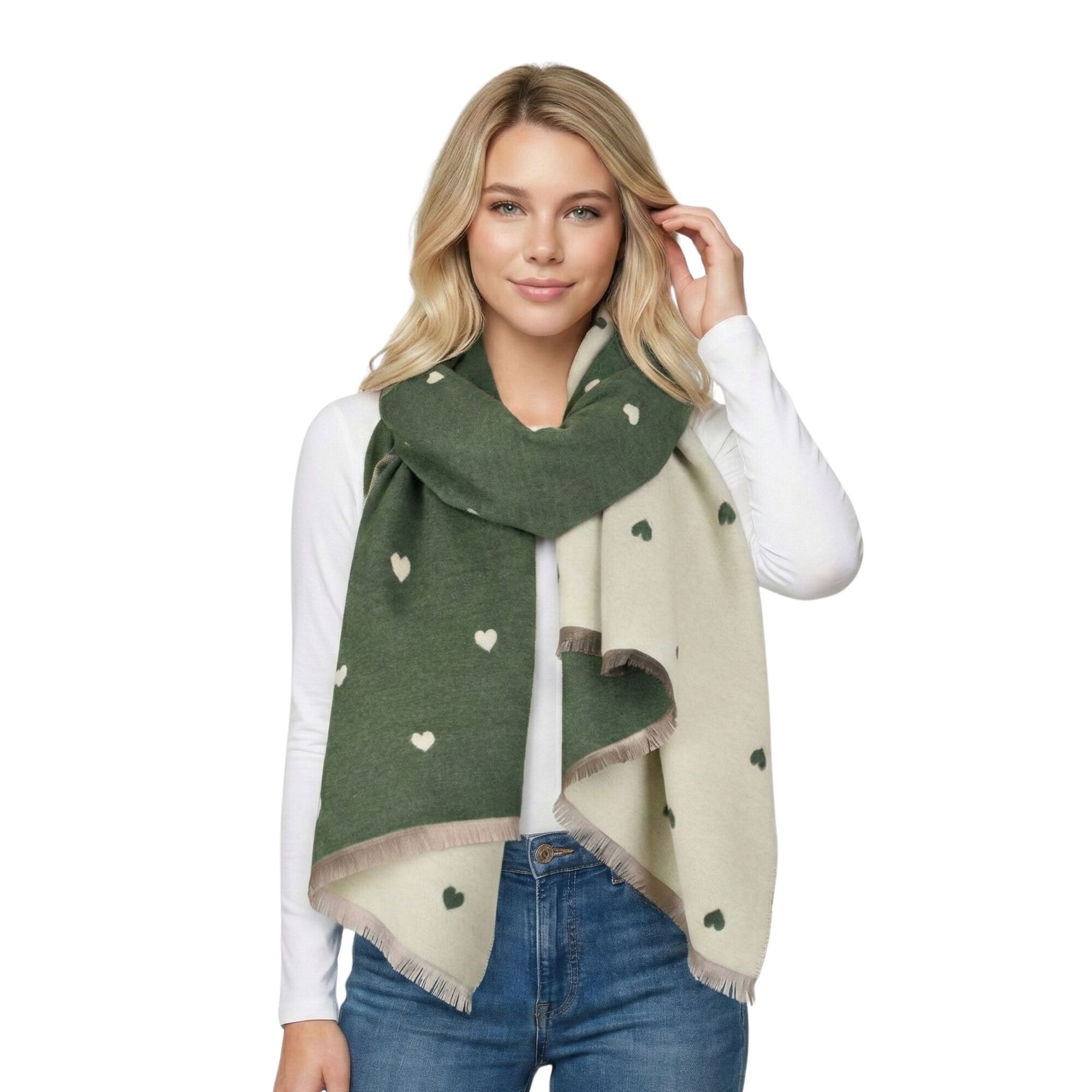 THSS2871: Green: Reversible Petite Hearts Scarf