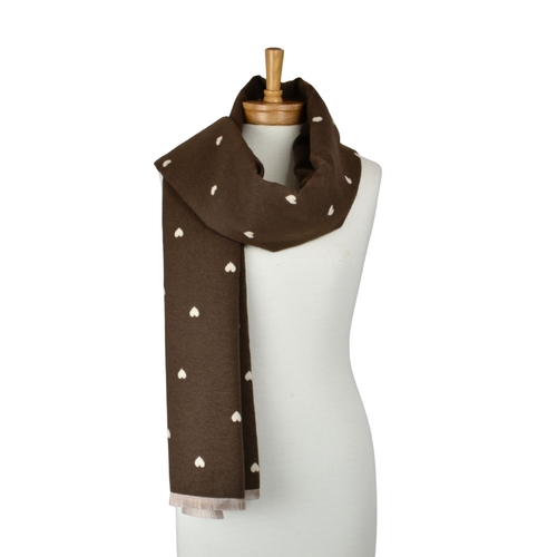 THSS2872: Brown: Reversible Petite Hearts Scarf