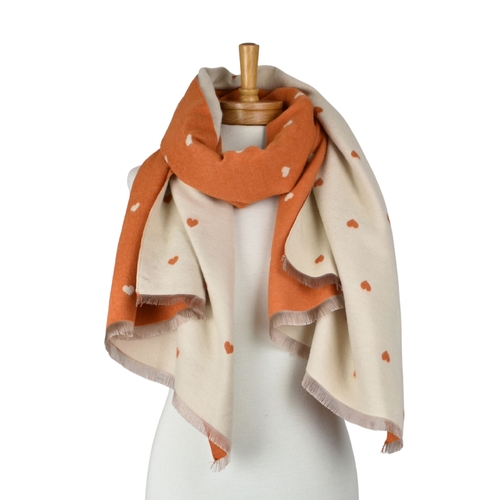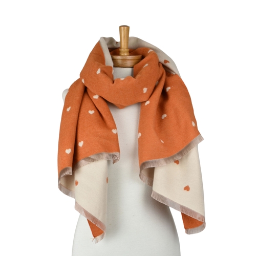 THSS2875: Orange: Reversible Petite Hearts Scarf
