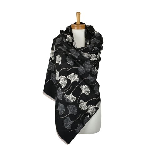 THSS2878: Black: Reversible Multi Gingko Scarf