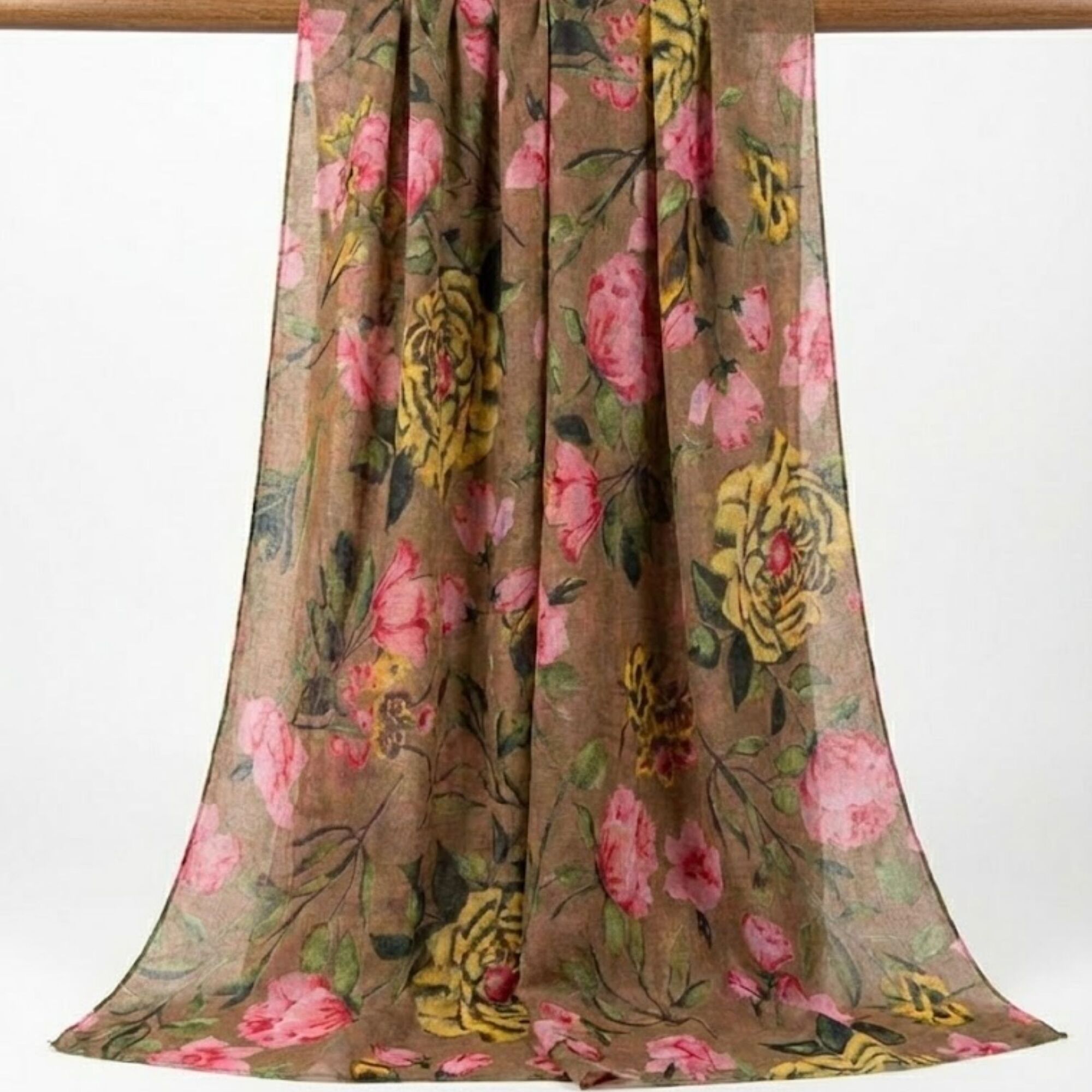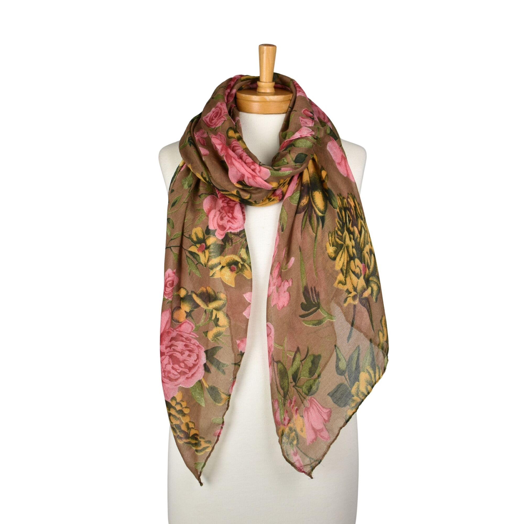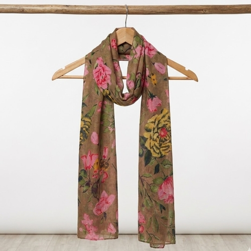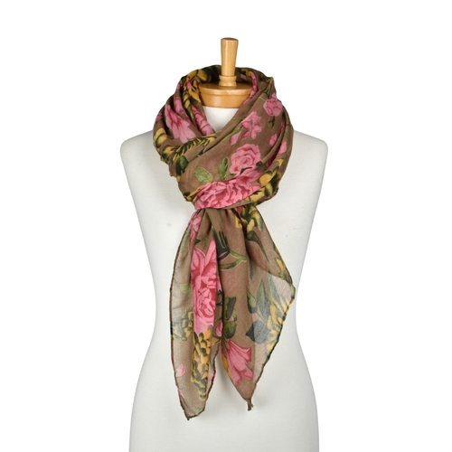 • THSS2882: Brown: Peony Rose Garden Scarf