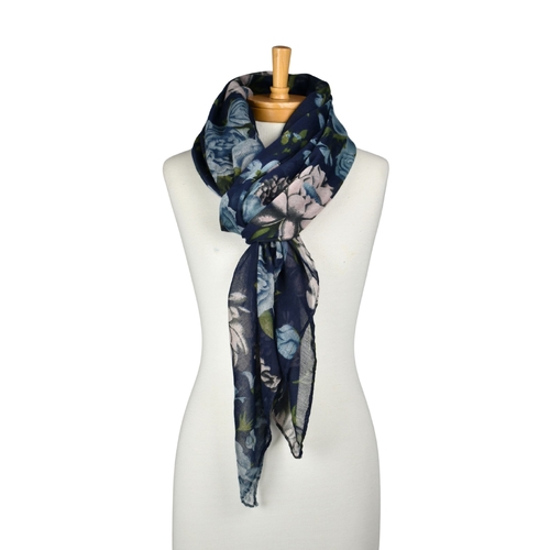 • THSS2884: Navy Blue: Peony Rose Garden Scarf