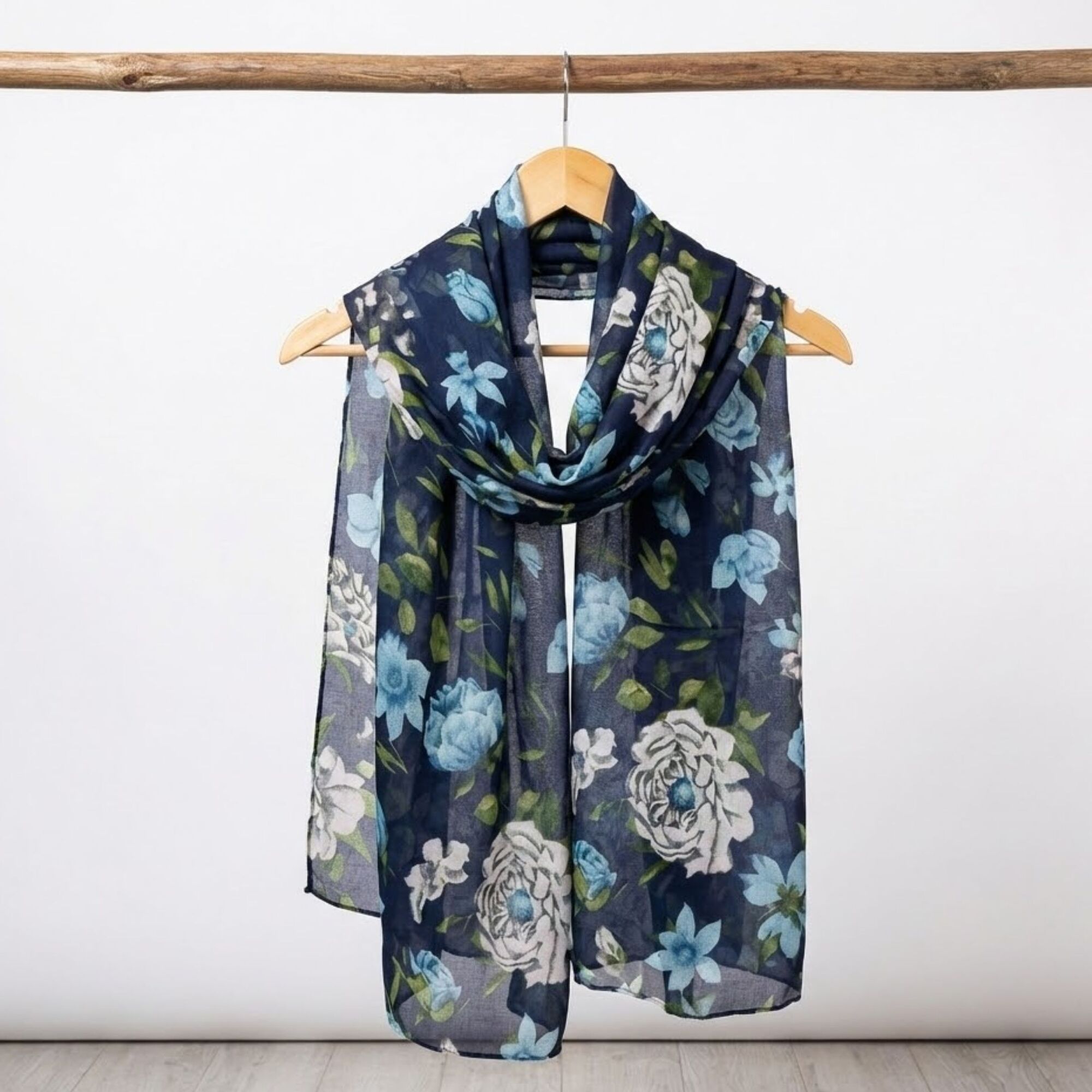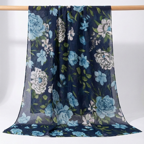THSS2884: Navy Blue: Peony Rose Garden Scarf