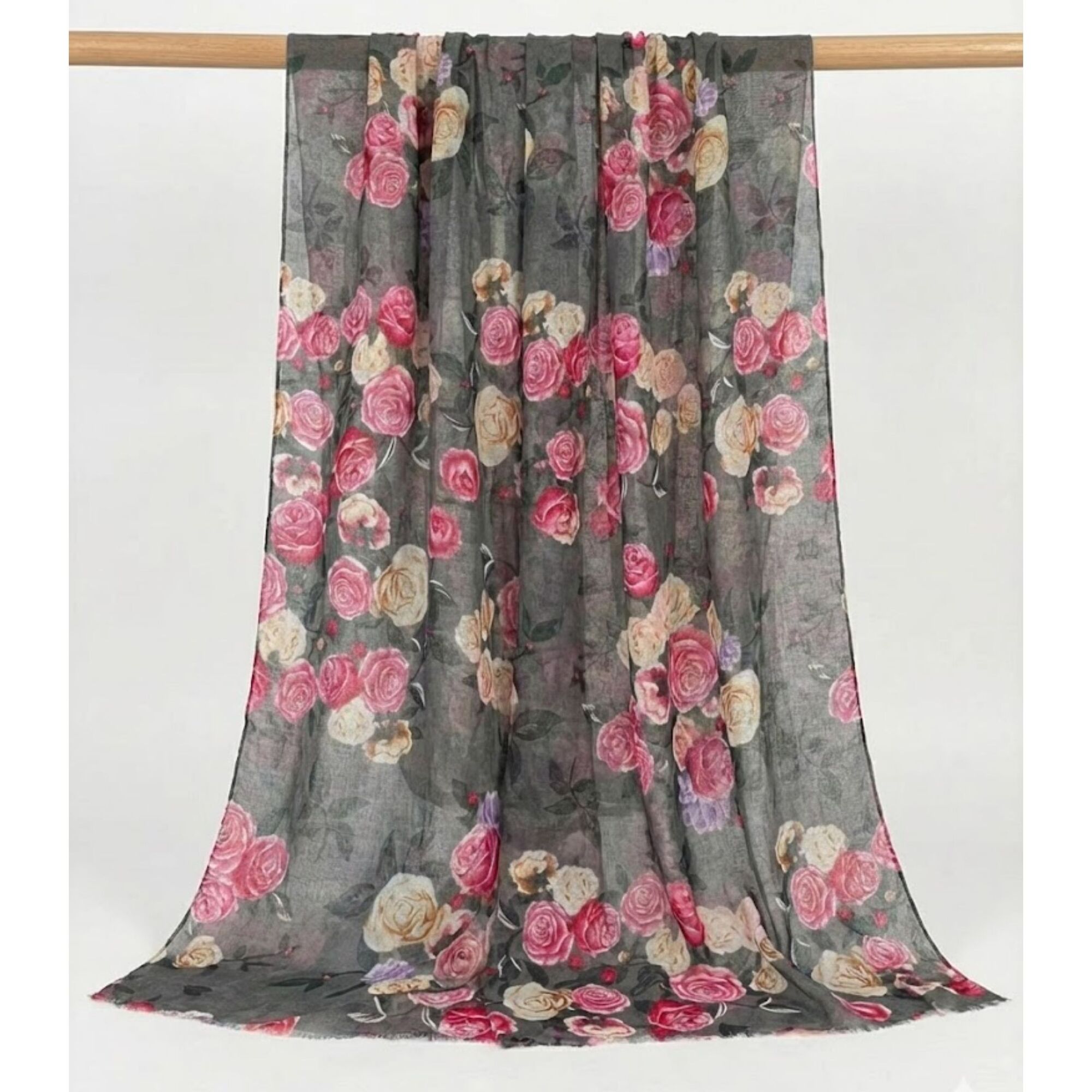 THSS2890: Grey Pink: Vintage Rose Garden Scarf